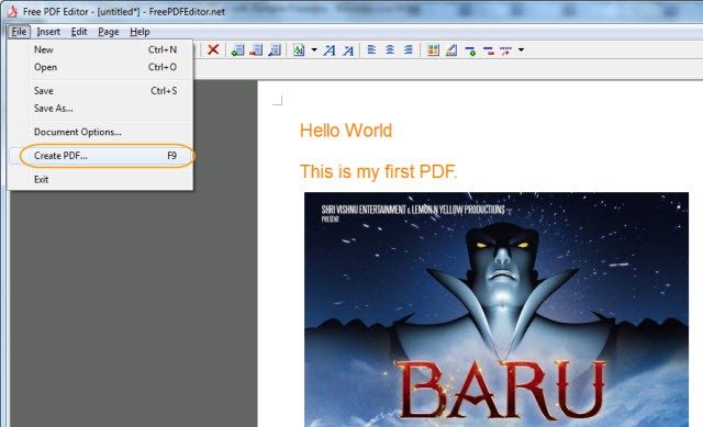 Once you open up this tiny application, you will see a blank window that will also you to insert Text, Images of your choice from your computer. It also provides an additional toolbar that will allow you to change the color of the text and customize the text, the way you want it to be. This application also allows you to add various shapes like Rectangle, Square and Ellipse. After aligning the text as per your requirement, you can then go ahead with pressing the function key F9 from your keyboard to create and save PDF format files. The default document extension for this application is FPE which meant Free PDF Editor File. While Free PDF Editor is not at all a tool to create professional and advanced kinds of PDF files, it certainly supports many simple as well some advanced functions to let you create some basic PDF files. You can download it here. If you know of any more good free tools to create PDF files, please do share them with us. This list of free PDF readers may also interest you.